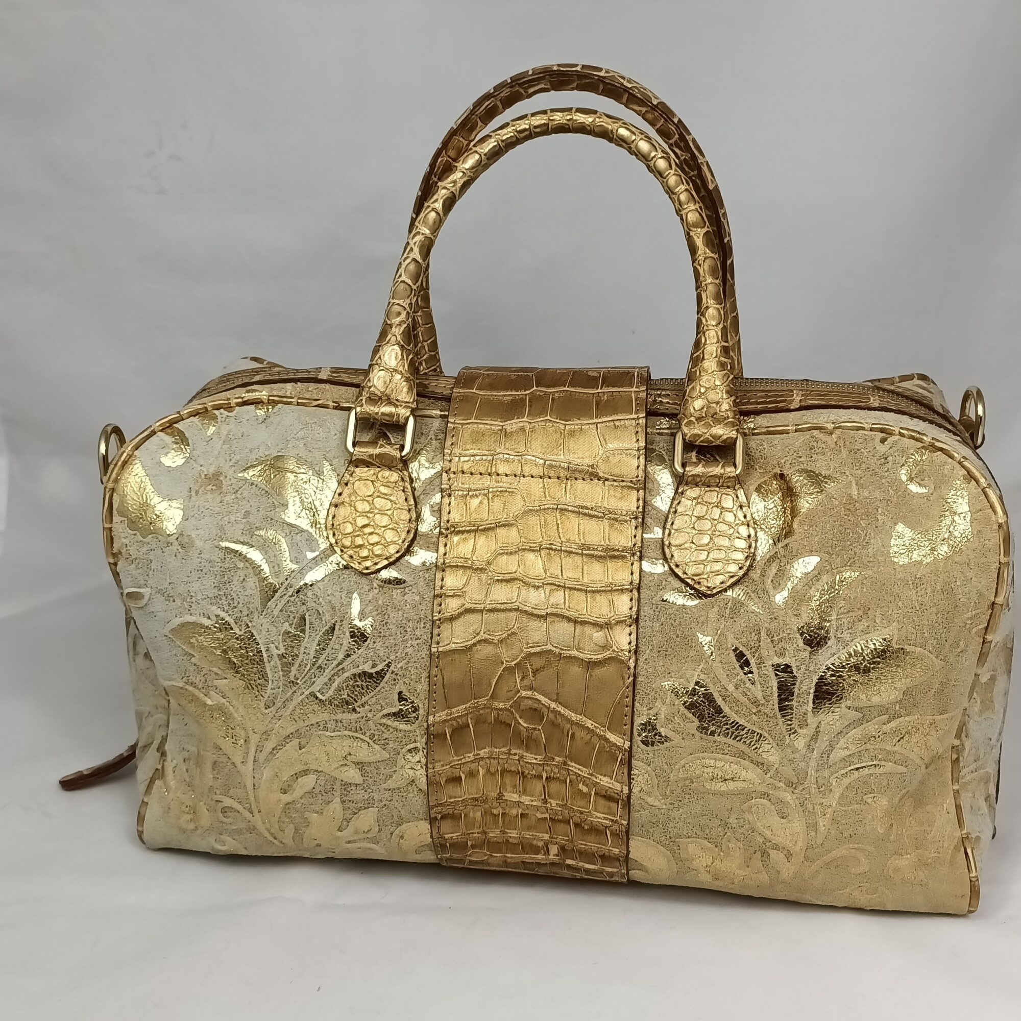 Tracolla di coccodrillo oro , taschino interno chiusura a zip .