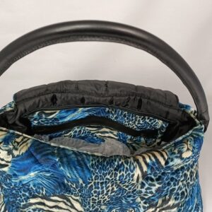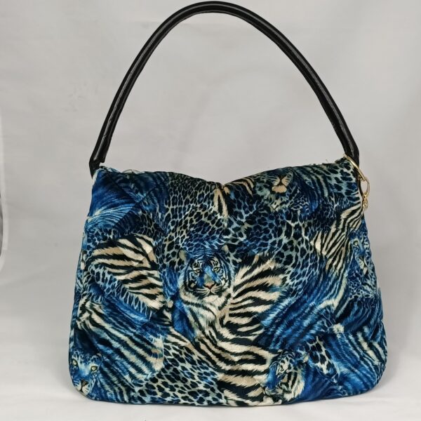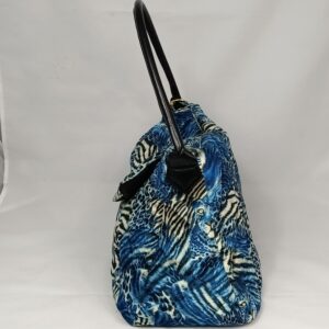 Tessuto velluto, manico di pelle , dotata di tasca interna chiusura zip .