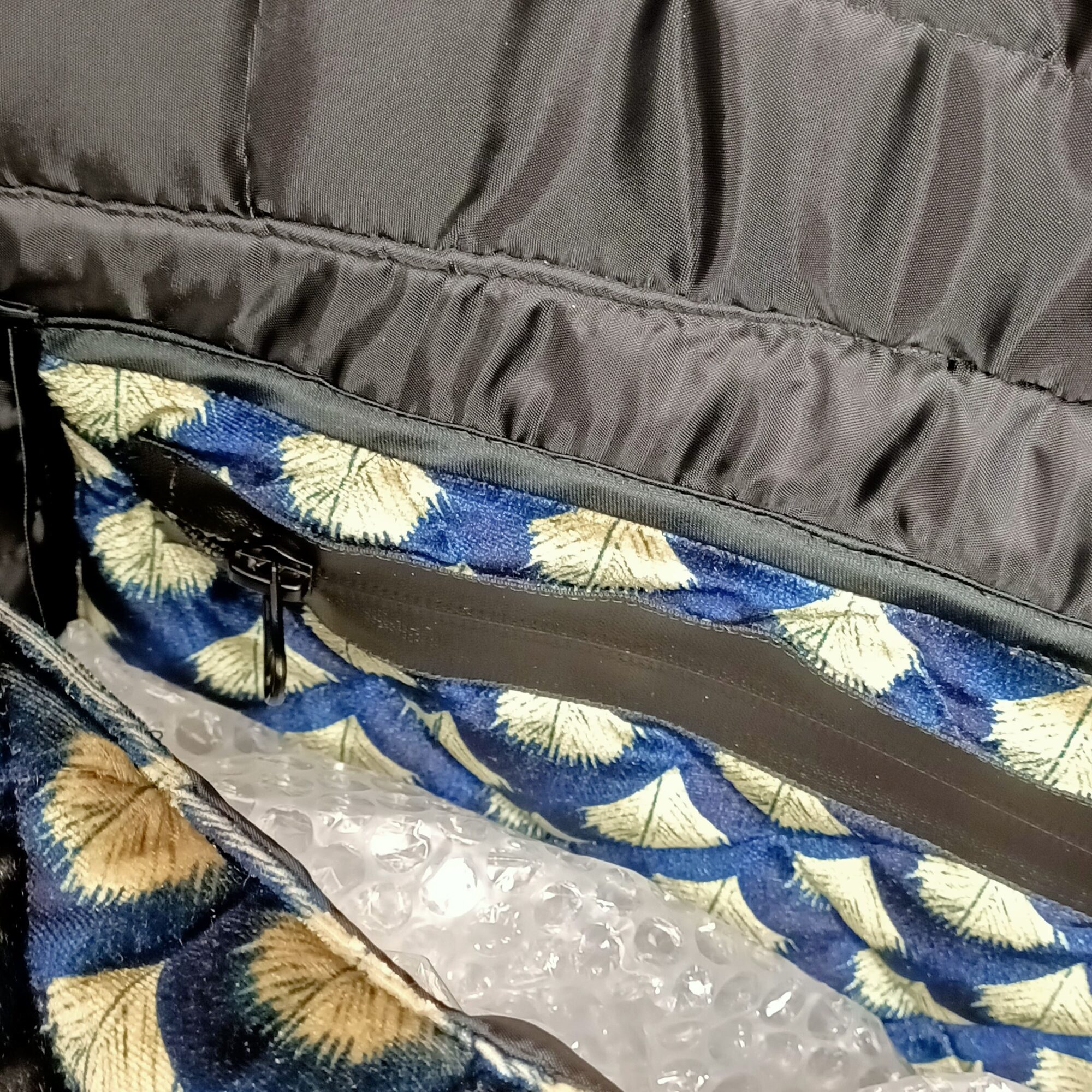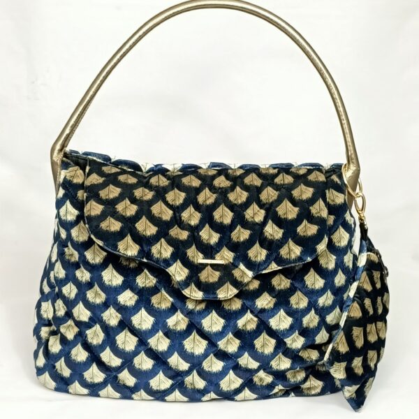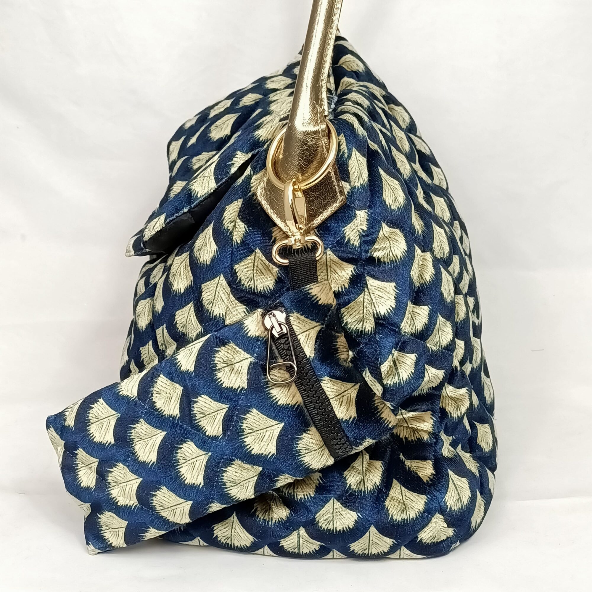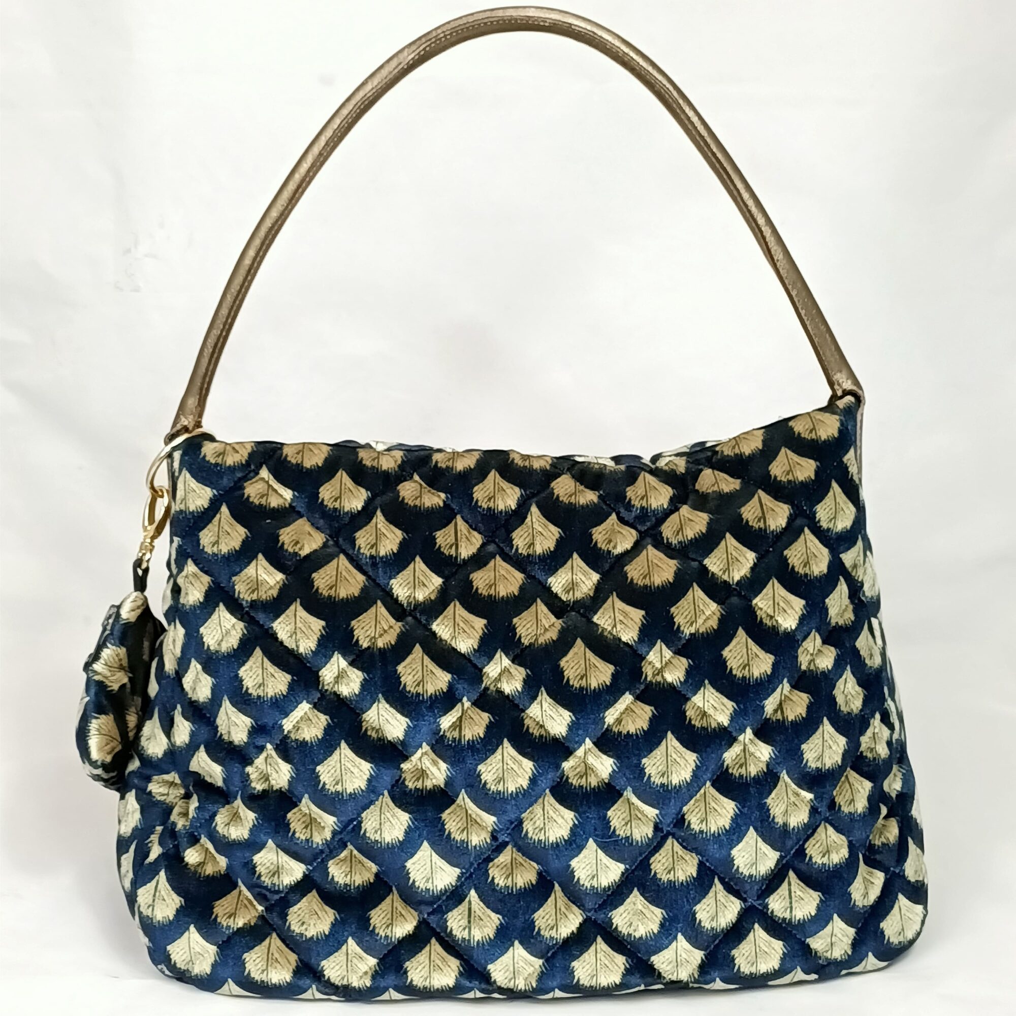 Tessuto velluto, manico di pelle , dotata di tasca interna chiusura zip .