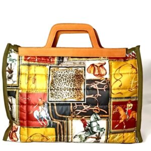 realizzata a mano con tessuto termico, con dettagli di passamaneria e gros , manici in pelle , interno nero con grande tasca stesso colore esterno chiusura a zip . Tutti i nostri articoli sono pezzi unici , in vendita solo presso la nostra sede a Torino. Per qualsiasi richiesta contattateci.